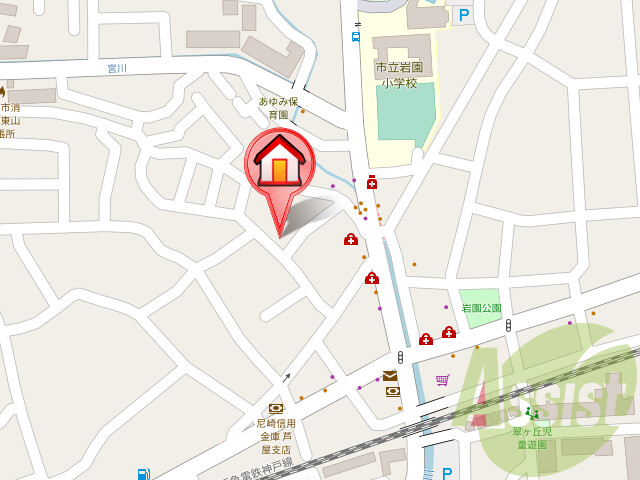 芦屋市立岩園小学校 310m / 芦屋市立山手中学校 1,956m / 総合病院 889m / 公園 292m